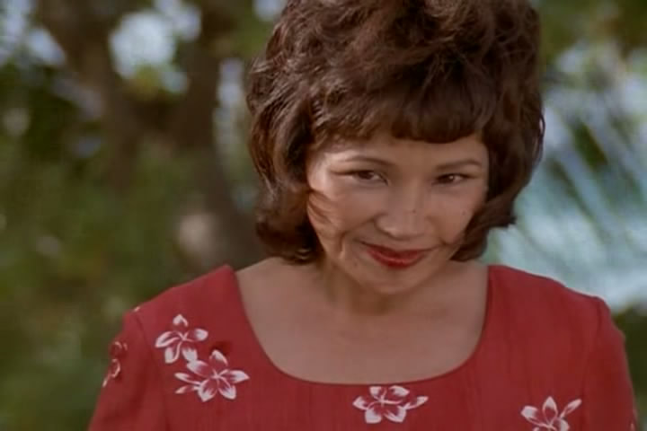 Kekoa (Stacy Kemano) tries to make amends to her invalid father (Pat Morita) who still disapproves of her and her engagement to J.D. (Michael Bergin).
