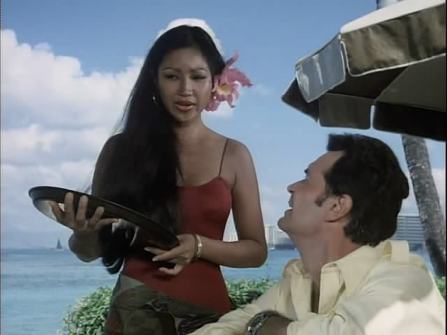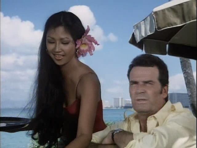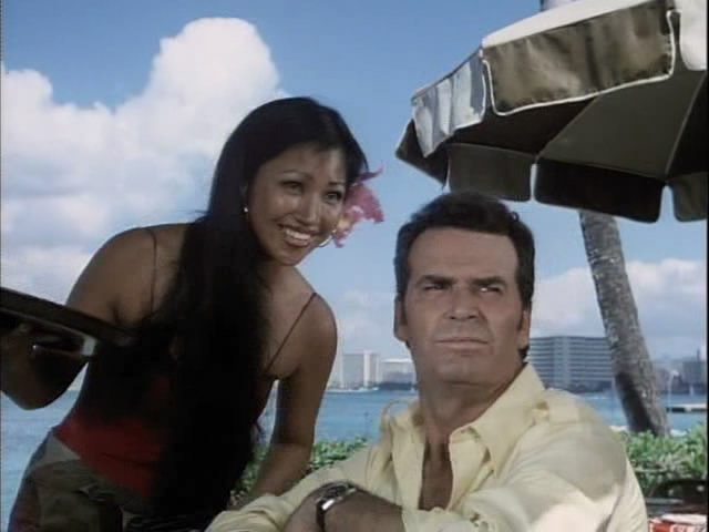 Elissa plays a waitress who serves Rockford (James Garner) a spiked drink.