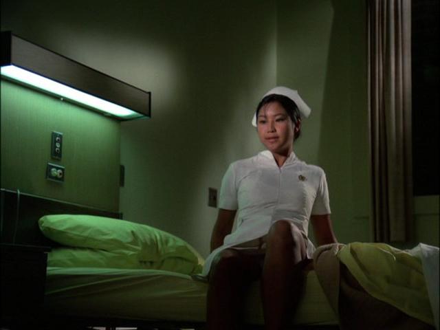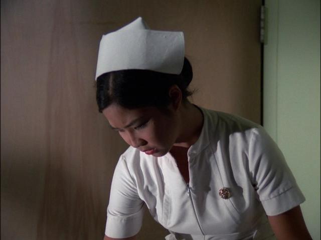 In this episode, Elissa is a nurse assigned to care for Timor Ambok (George Takei), who has brought a missile component to Hawaii for a radical group intent on assassinating an Asian dictator who will soon visit the Islands. Ambok has been involved in a traffic accident, and when she assures him that all of his belongings are accounted for, he rushes to the closet to check on them. She tries to restrain him and he throws her across the room onto the bed. When she leaves the room to get an orderly for assistance, Ambok cannot find the missile components in the closet and takes a cyanide pill.
