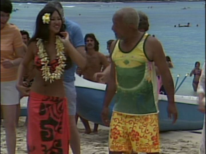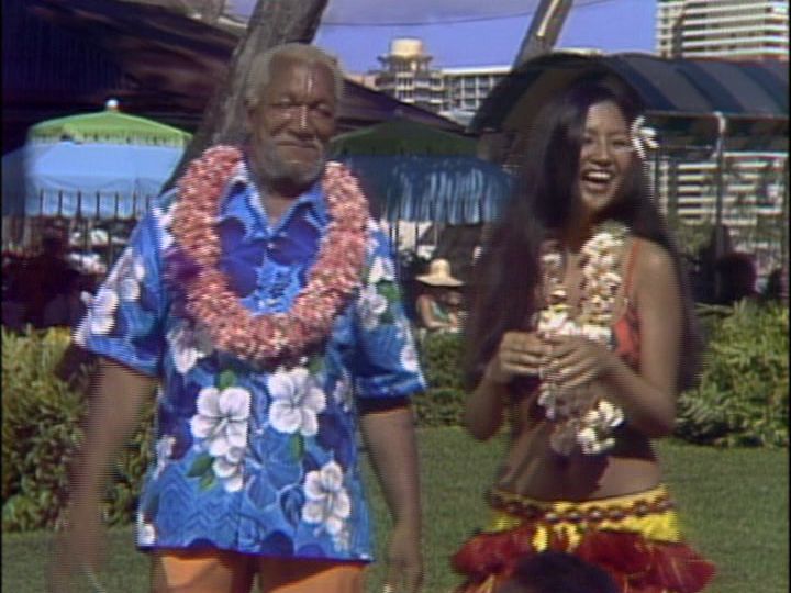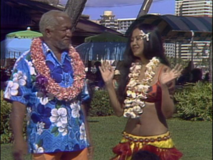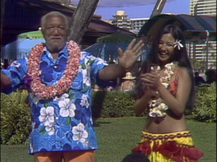 Fred and Lamont Sanford (Redd Foxx and Demond Wilson) are lured to Hawaii by a trio of jewel thieves plotting to make Fred their mule for smuggling stolen diamonds to California. Elissa is a hula instructor on the beach teaching the dance to tourists, including Fred. Later at a luau, she gets Fred to demonstrate his newly-learned skills.