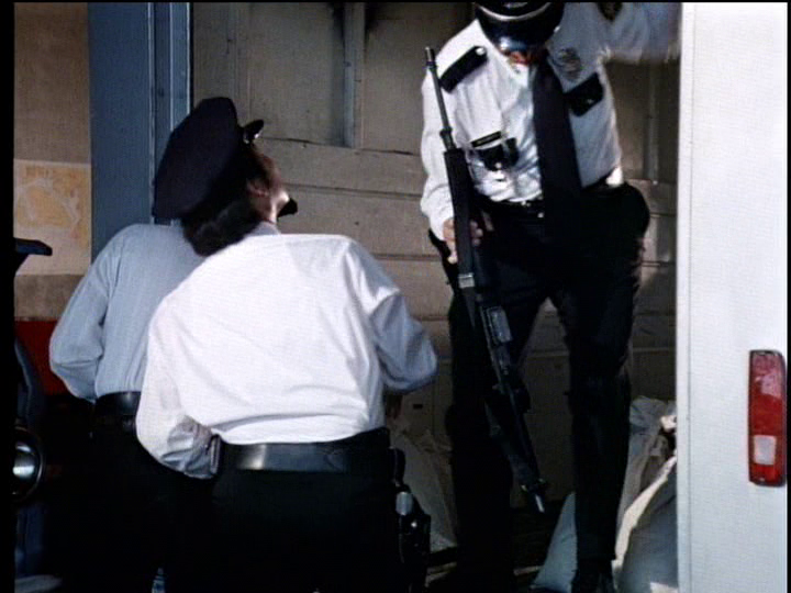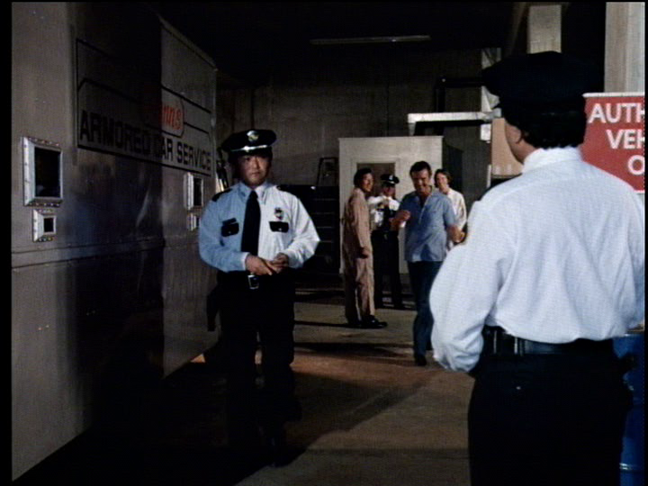Walter is an armored car guard, sitting in the passenger seat. After the truck enters the company garage, Walter emerges from the truck, then helps unload bags of money.