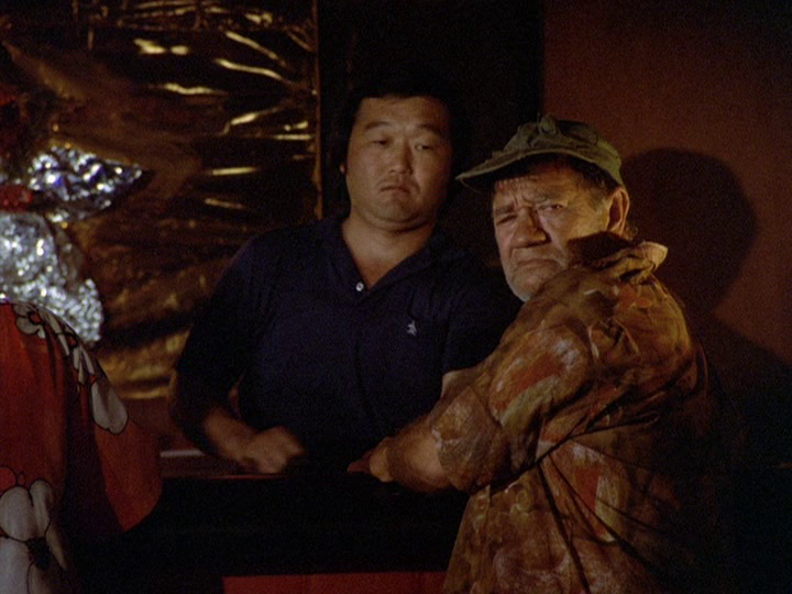 Later, HPD cop Dean Lyman (Charles Cioffi) comes to the bar, looking for a hooker that hangs out there. Walter is only seen from behind. Lyman says, "I'm looking for a Kelly Mitsui," and Walter asks him, "What do you want her for?" (The subtitle below is incorrect.) Lyman grabs Walter's shirt and tells him, "No, I ask the questions. Now, where is she?"