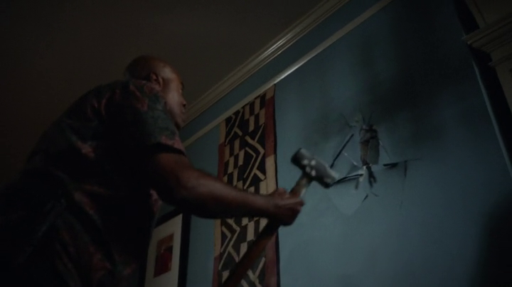 Following this, another suitcase, possibly with a bomb, is left in a Honolulu TV station. The place is quickly cleared out, but there is nothing significant in the suitcase other than a flash drive which contains a Powerpoint-like presentation featuring Jason Duclair (Randy Couture), the serial arsonist who threatened ATF agent Kathy Milwood (Melina Kanakaredes) last season. The audio for this presentation, which looks not particularly easy to create, has some guy with a creepy voice reciting a variant on the nursery rhyme "Ladybug Ladybug":
