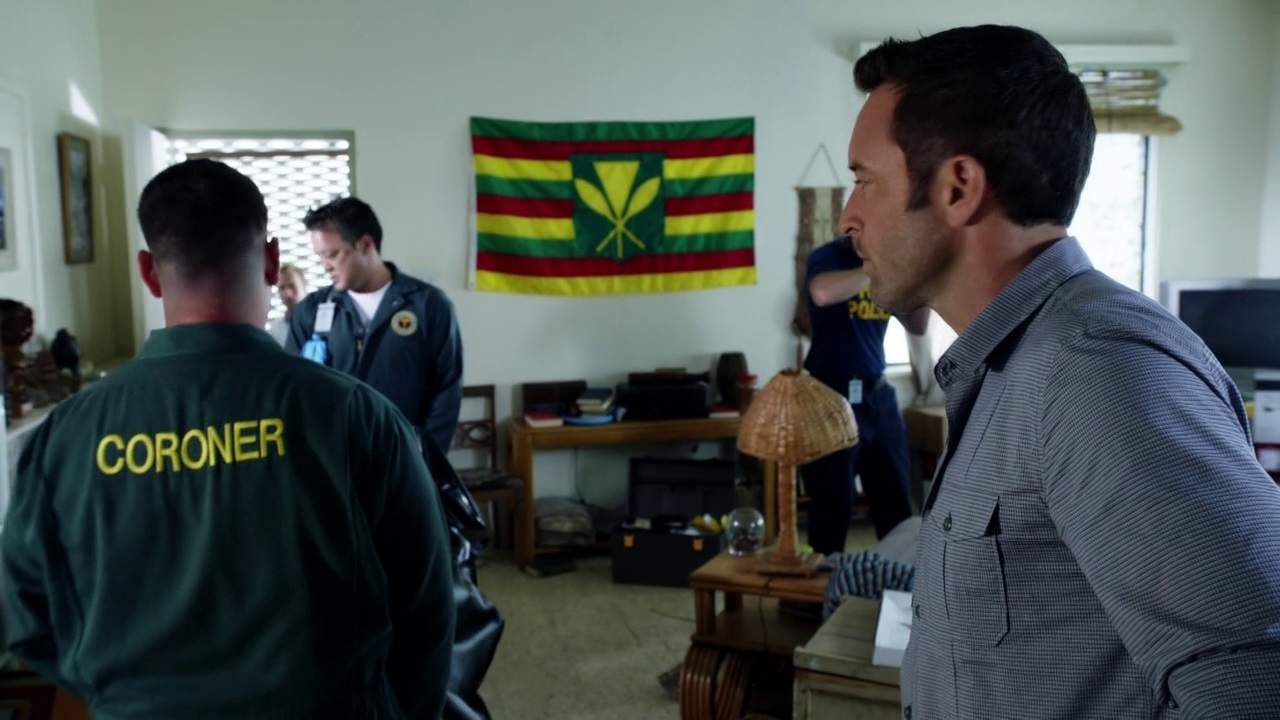 Five-0 is soon hot on the case, despite McGarrett receiving a mysterious hang-up phone call which he thinks might be from Catherine. According to Harper's wife, her husband had received threats from the Samoan mob to whom he owed protection money and he had contracted the services of a security company to protect him from the Samoans. Unfortunately, they did not accompany him that day to the deposition room. The connection with the Samoan mob is a red herring, however, because their bagman Ira Laulu (Siaosi), interviewed in the blue-lit, denies any connection to the murder, and is later vindicated by his ledger which suggests the mob stays away from large businesses.