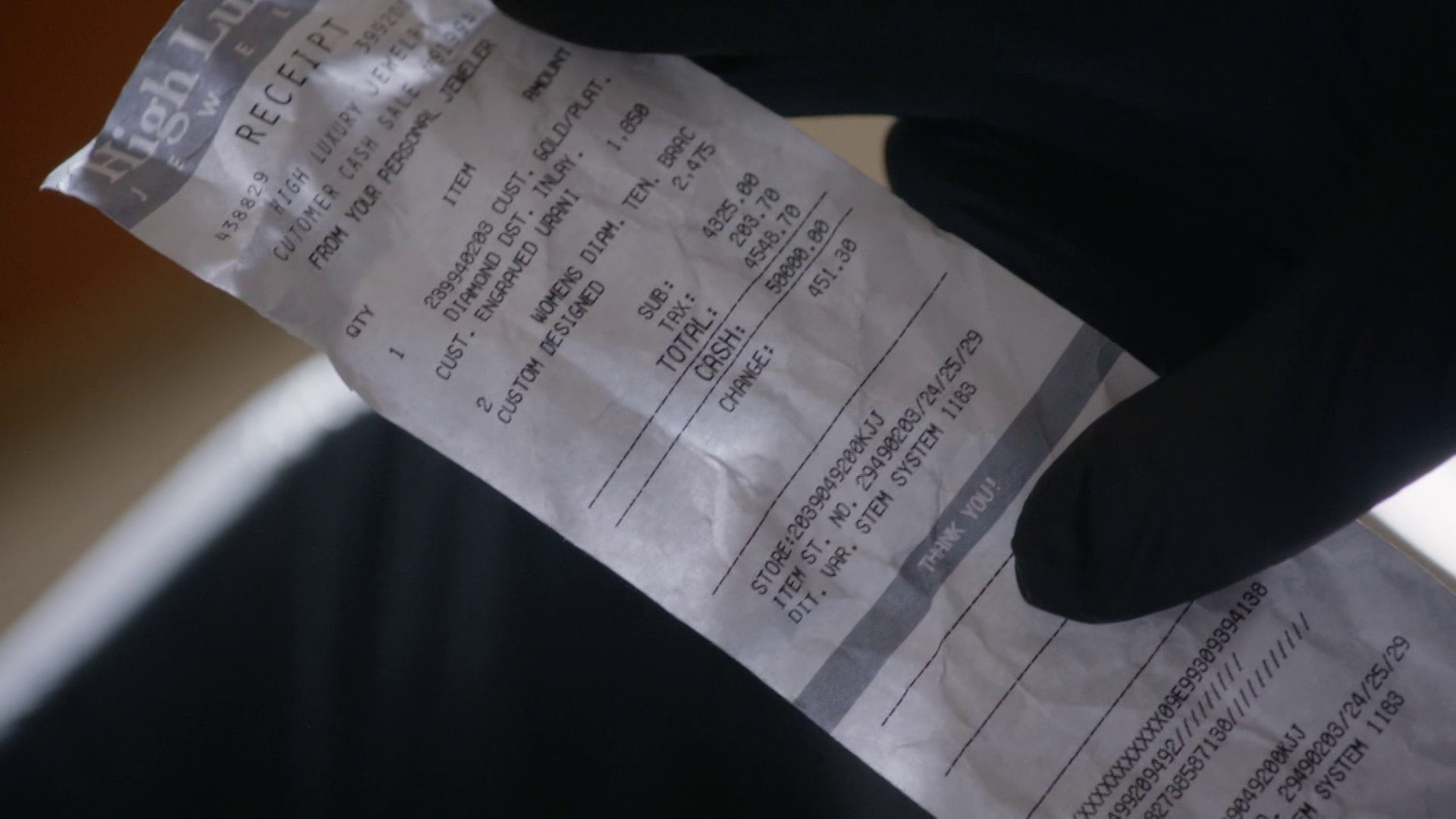 - Among the expensive items at Mosley's place is a landscape painting by Hawaiian artist Herb Kawainui Kane (1928-2011) worth over $100,000. Grover also finds a receipt for two items of jewelry in a garbage can; this receipt contains several errors. Presumably Mosley paid $5,000 for the jewelry, but it says but the cash received was $50,000 (as noted by user lisamckinn on IMDb). The items are as follows: CUST. GOLD/PLAT. DIAMOND DIST. INLAY. CUST. ENGRAVED URANI - $1,050; WOMENS DIAM. TEN. BRAC CUSTOM DESIGNED - $2,475. Subtotal for those two items should be $3,525, but it is $4,325. The addition of the incorrect subtotal $4,325 and tax ($203.70) is also wrong, it should be $4,528.70, but it is $4,548.70. Based on this last (wrong) figure, the change of $451.30 from $5,000 (if it should be $5,000) is correct. By the way, it doesn't make sense that if Mosley paid $5,000 in cash, why would he have given them that amount in $100 bills and gotten $451.30 in change? More likely he would have paid $4,600 in cash. See the receipt here. Also note that when Grover leans over to get the receipt, he doesn't actually lean over far enough to reach into the garbage can.