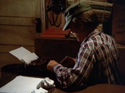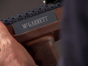 Later at the lab, Che Fong says that "blotched" characters in the typed letter McGarrett received are "due to old age." I would have thought they were produced by dirt! Che has identified the make of typewriter as a "portable Corona" which is at least 40 years old. In the letter, which is projected on the wall, it says "set in that courtroom" instead of "sat," and where McGarrett read "through his stinking gut," it says "stinking head." There is also a sentence which McGarrett didn't read: "I'd just had it up to here — like the fella said about the alligators, ha ha," probably referring to the well-known line, "When you're up to your ass [or neck] in alligators, it's hard to remember that your initial objective was to drain the swamp."