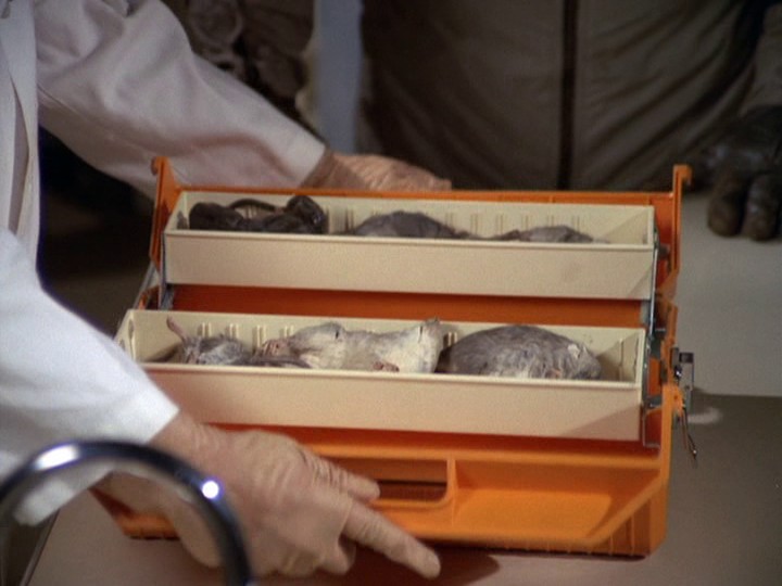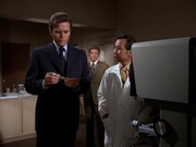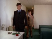 - Les Hutchens sends along an anecdote: "I was with Keene Curtis during the filming of this episode. There was an interesting problem during filming where Mr. Curtis' own suit needed to be 'altered' to make it look as if it had been shot. They had filmed for two days with his suit and now had to put a bullet hole in it. Keene had strong reservations about this so a special effects man sewed some thread into the shoulder, and brushed it with some chalk. The final effect as seen on tv was very effective, and his suit was totally undamaged."
