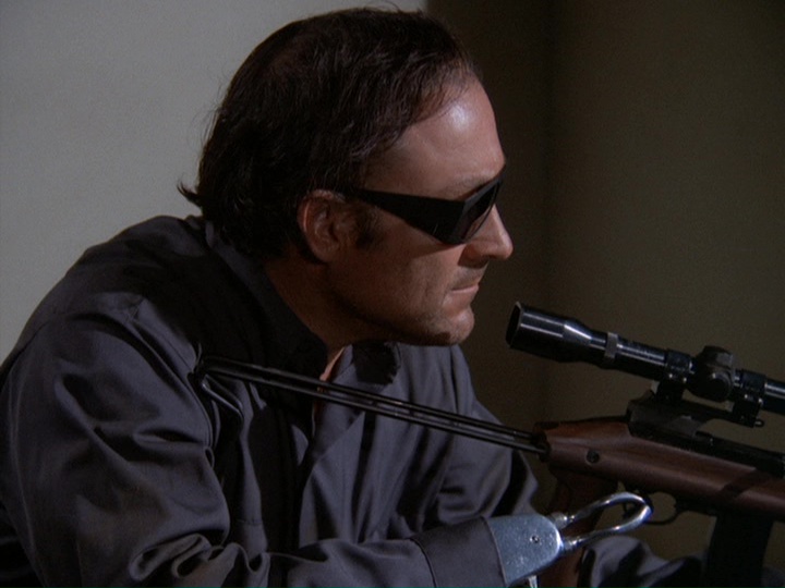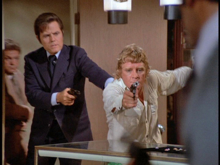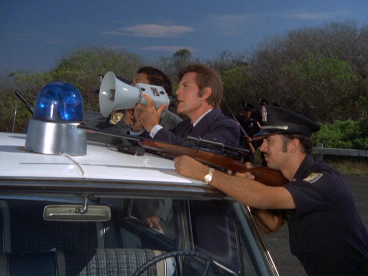 After this, Donald (later Billy) Roessler briefly appears as McKinney, who engages in a wild gun battle with the cops, calling them "pigs" and Danno "big mouth" when the latter uses a bullhorn to try and persuade him to surrender.