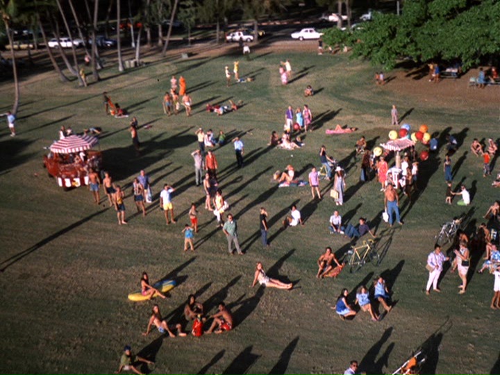 ○ A suitable cemetery for opening scene could not be found in Hawaii, so this sequence was filmed at the Signal Hill Cemetery in Long Beach, California. This was reportedly filmed at the O‘ahu Cemetery in Honolulu. If this was filmed in California, it is unlikely that "Filmed entirely on location in Hawaii" would have appeared at the end of the show.