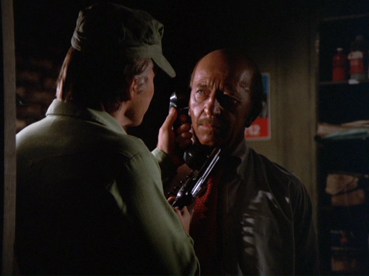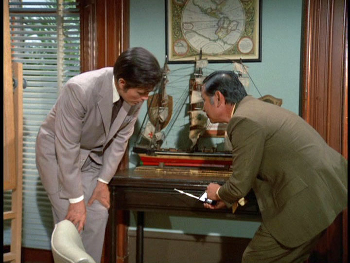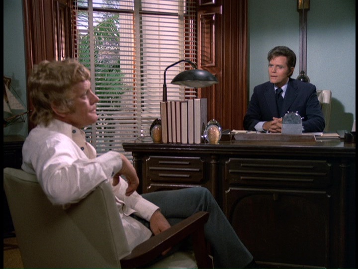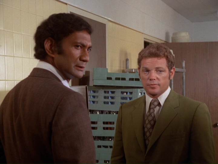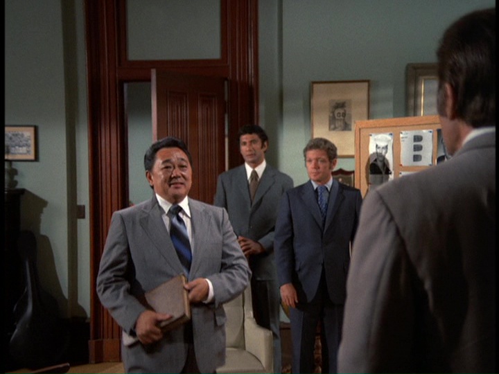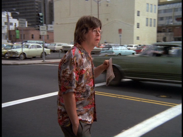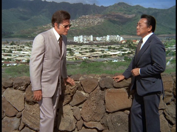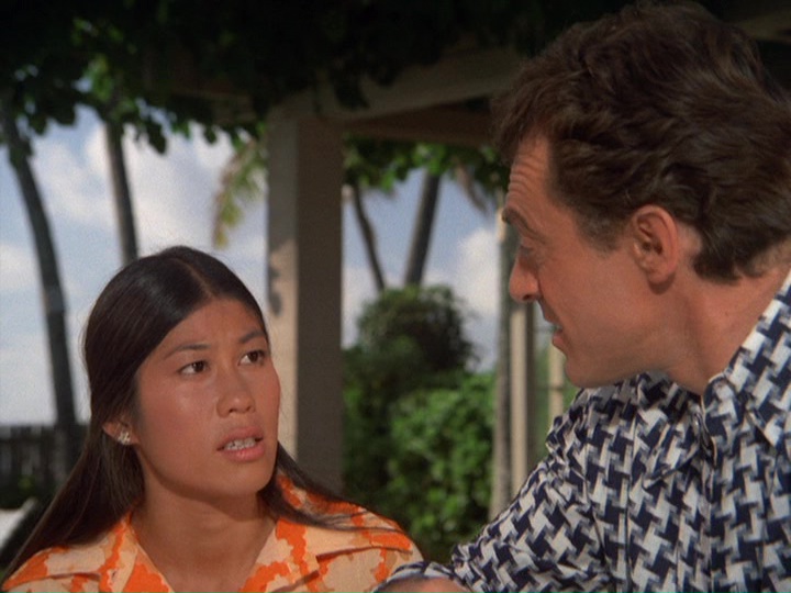 Zerbe's nervous, gum-chewing portrayal of Smith is very edgy, though the way Smith's letters are written tries a little too hard to make him look stupid. He seems pretty articulate when he is issuing instructions to McGarrett during the wild goose chase around town. The way Five-O unsuccessfully tries to make a connection to a suspect named Wheeler which does not pan out because the guy was in the hospital when Furika was being gunned down is an interesting detail. The music by Ray contains the usual stock tracks like the trombone interval theme and also some ominous bass passages.