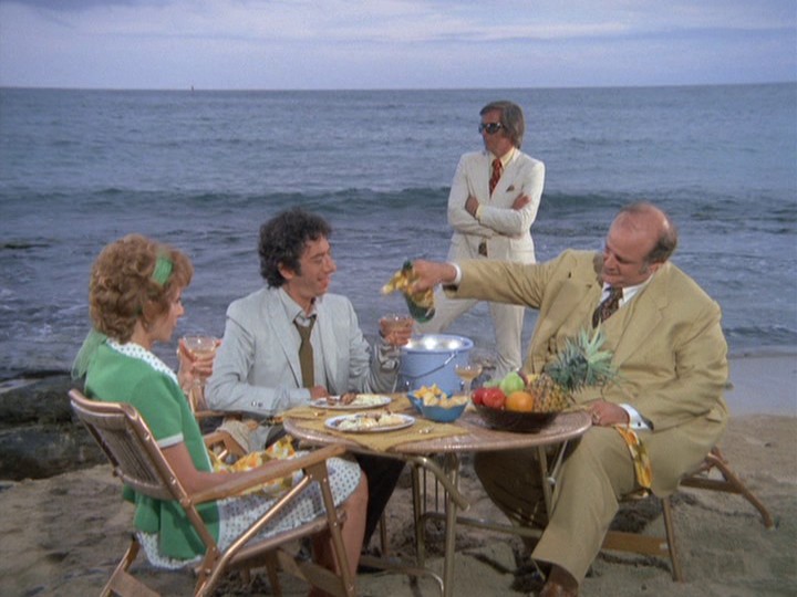 Two other characters are basically red herrings, and not even that. John Byner plays Duffy Malone, a mundane nightclub comic, who is paranoid because he has run up some major gambling debts, "25 or 30 thousand, and into the syndicate's books for maybe double that." Malone comes to McGarrett for protection, but Hawaii's top cop is already seriously out of his jurisdiction, I don't think so!