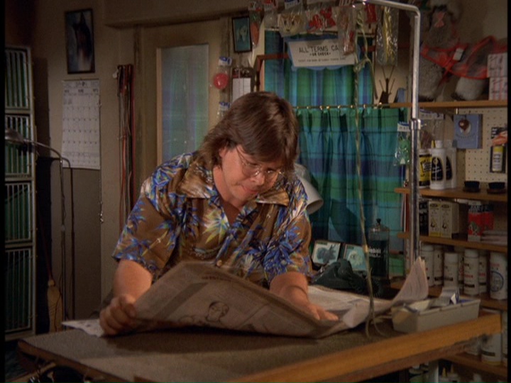 - When Stoner returns to his fleabag apartment after his car ends up in the drink, he has serious injuries and bleeding on his face. But at the end of the show, when we see him climbing up the ladder to the top of a building, there is no sign of these injuries.
