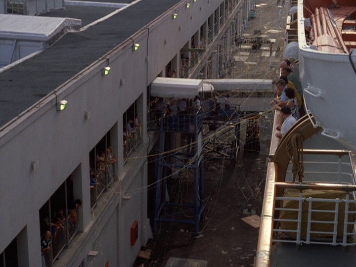 Meanwhile, Danno has located the bag which contained the money from the robberies, but it is empty. Unable to track the cash down, Danno tells a ship's employee, "Let's hit the staterooms." Seriously? Does he mean the stateroom of every passenger on the ship, while they are all taking part in the drill?