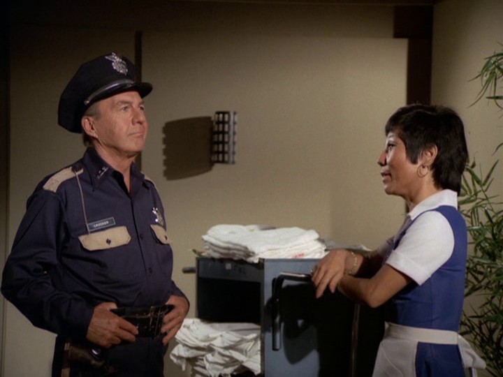 I don't know whether most of the filming during this show was done on the ship while it was between Honolulu and San Francisco (a voyage of five days); I kind of doubt this. There are some shots of the ship taken from above, probably stock shots. Considering the show is only about 50 minutes long, there is no opportunity to have a "floating Grand Hotel" kind of episode. Most of McGarrett and Danno's interaction is with the crew, including Parkins (Peter Leeds), whose initial interaction with the two cops is suspicious.