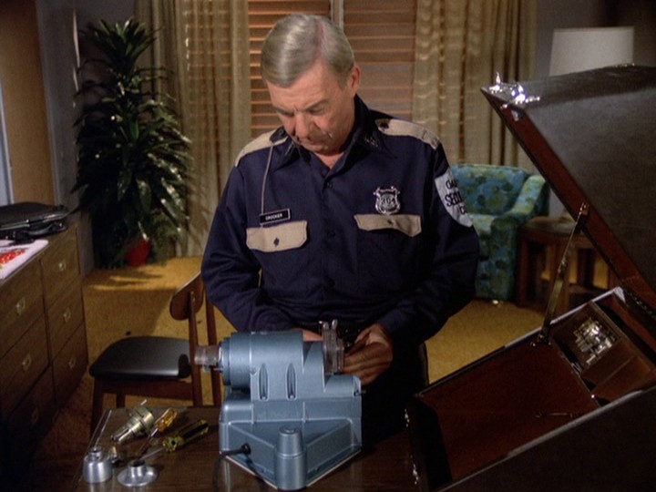 Aside from his disguises, which includes a priest with the name "Father Doigt" (meaning "finger," which is what he gives to Five-O), Bordeaux also has his own key-cutting machine which he uses to create master keys. This is kind of far-fetched, but nothing compared to how Bordeaux sneaks a transmitting bug under the desk of the manager of the hotel where he will be "working."