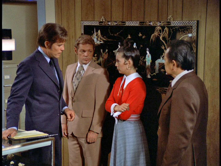 Weber (Norman Wright), manager at one financial institution, get suspicious about Gordon's withdrawal based on calls he's had from associates at other banks and contacts Duke, who says he will send someone to come and take a look. When Weber tells Gordon there will be a delay, Gordon attempts to leave, but after Weber sees Meskill's gun pointed at Gordon's back, there is a shootout with a guard in the bank, who is seriously injured. Meskill is shot dead and an armed citizen in the bank, Everett Chang, United States Congressman, twice elected to the House of Representatives, who attempts to intervene, is wounded and later dies in hospital. There is immediately something odd here. Why does this Congressman have a gun? Was Hawaii an open carry state in 1974?