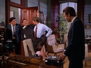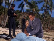 As he leaves the office, McGarrett sees that he is being followed. In a classic scene, he calls for members of the Honolulu Police Department (HPD) to help him bust the guy tailing him (Baird Miller), who turns out to be another intelligence officer. Furious, McGarrett goes back to the local office where, after throwing another agent (William Boyett) across the room, he tells Brent "Don't you ever put a tail on me again."