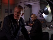 Khigh Diegh playing Wo Fat is charmingly sinister, and there is a connection to earlier movies featuring the actor, The Manchurian Candidate (1962) and Seconds (1966), both directed by John Frankheimer, which also involved brainwashing and programming. "Intelligence" operative Miller (Andrew Duggan), who is a friend of McGarrett's, is in cahoots with Wo, and McGarrett denounces Miller after he is captured near the end of the episode as a "dirty, double-dealing fink." Later, Captain Schroeder of the Arcturus (Wright Esser) tells Miller that he will receive "thirty pieces of silver" for his complicity, suggesting he is like Judas. The long speech by Wo prior to McGarrett being put into the cocoon's large pool does tend to go on quite a while, despite a few clever lines like "As we clever Chinese say, 'the plot thickens'," and "I can see your mind racing, 'What medieval Chinese torture'?"