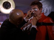 The next scene is a brief shot of the exterior of the Arcturus outside. Chin Ho is still alone doing surveillance. There are a couple of shots of walkways on the ship.