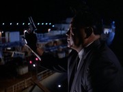 At this point, we cut to the Five-O team outside, who are doing surveillance. I think this scene is kind of dumb, because it is very likely that the people on the Arcturus which is nearby could see them easily! Chin Ho tells Danno and Kono to go and get some coffee and that he is going stir crazy: "I gotta have something to do or I'll blow my stack."