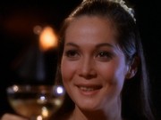 Kono does track down Rosemary, supposedly a university student who seems about half McGarrett's age. When the show was filmed, Jack Lord was about 47 years of age; Nancy Kwan was around 28. McGarrett calls Rosemary "a pain in the ... neck," and she calls him "Mr. Fuzz." After McGarrett gets her to reveal Hennessey's last words, he calls the Five-O team back into the office and plays back a reel-to-reel recording he just made of her saying this. Why doesn't he just get her to repeat the phrase since she is sitting right there? Later, McGarrett and Rosemary become chummy. As they sip champagne on the beach (a rarity for the teetotaler McGarrett), she says, "I wish I could psych you out." She goes on, "Why did you become a cop?" and he asks, "Why did you become a hippie?"